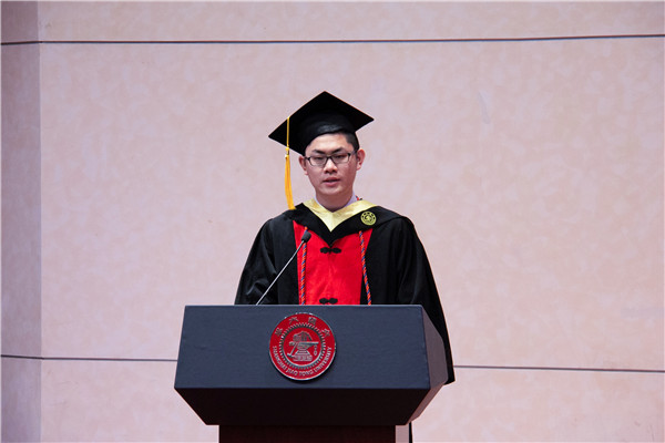 研究生代表陈是扦感恩交大带给他严谨求真的科研态度,表达了回乡奉献的愿望。本科生代表徐文彬回顾了四年来自己人生态度的转变,建议同学们认定目标就必须竭尽全力,不应安于现状,要勇于突破自己的舒适圈。