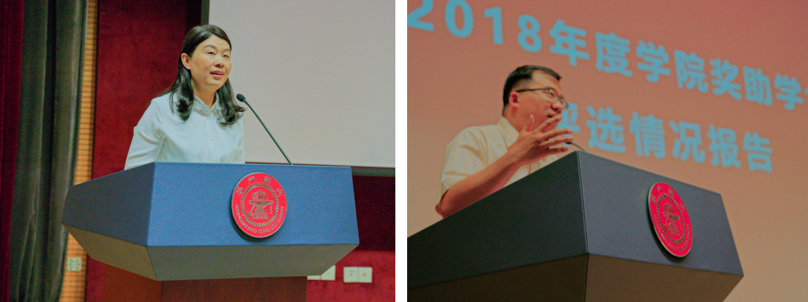 胡艳丽代表学校向设奖单位表示感谢。她介绍了beat365中文官方网站奖助学金发展历程以及未来改革方向,希望获奖同学饮水思源,用好每一笔奖学金。顾希垚做2018年度奖助学金评选报告。2018年度学院共有1139人次获得各类奖学金,388人次获得各类助学金,其中22名本科生、55名研究生获得国家奖学金。同时,在社会各界的大力支持下,学院2018年度共设立社会捐赠类奖学金22项,受奖助超过149人次。他希望获奖学生知恩图报,继续发扬拼搏精神,传递好历史的交接棒,在实现中华民族伟大复兴的征程中贡献力量。