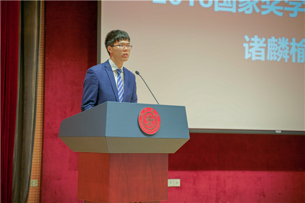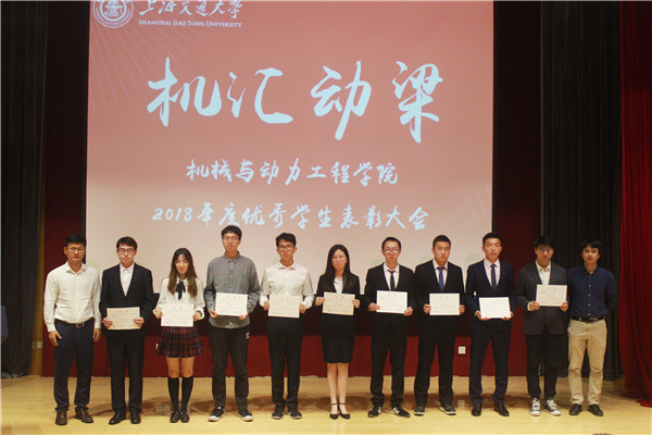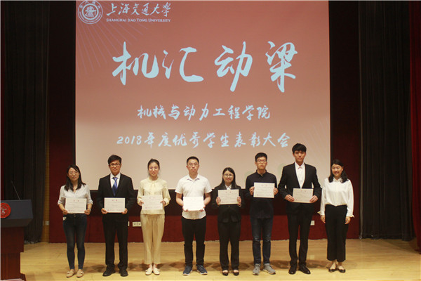 表彰大会由“问学篇”、“通达篇”、“学院奖学金颁奖”三大主题组成。“问学篇”中展示了获得2018年度国家奖学金的77人和上海市奖学金获奖者3人。国家奖学金获得者、学神学霸俱乐部前主席诸麟榆作微演讲,介绍了他参与设计与制造课程获奖的科研经历和担任学神学霸俱乐部主席的收获,鼓励各位同学脚踏实地、潜心学习,不断攀登科研高峰。