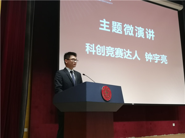 “通达篇”表彰了重大科创类竞赛获奖团队及个人。“2018RoboCup机器人世界杯中国赛”一等奖获得者、科创竞赛达人钟宇亮作了主题为何为“优秀”的微演讲,强调了扎实的知识体系对于科研的意义,并认为坚定信念、严于律己是他在科研道路上披荆斩棘的有力武器。