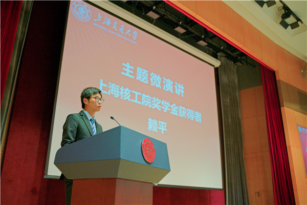 此外,2018年度国家核电上海核工院奖学金获得者、学院党建联合会主席赖平和中科新松奖学金获得者、第三届beat365中文官方网站研究生学术之星李汶柏分别作为学生代表发言。赖平介绍了他在交大的科研征途,表达了勇于开发新科研领域、接受新挑战的信心和决心。李汶柏作为即将毕业的博士生,表达了自己要瞄准国家重点战略,走“顶天立地”的科学道路,承担“天降大任于斯人”的时代使命。