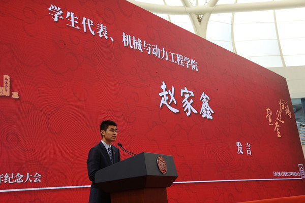 赵家鑫作为学生代表发言,围绕“何为交大精神?何为交大学子?”分享了自己的求学经历与感悟,表示刚正不阿,勇攀高峰的交大良师和有智慧、有技能、有担当、有大爱的交大学子始终激励自己以超越和引领时代的精神,推动科学的进步、追寻社会的正义、憧憬更加璀璨的人类文明。
