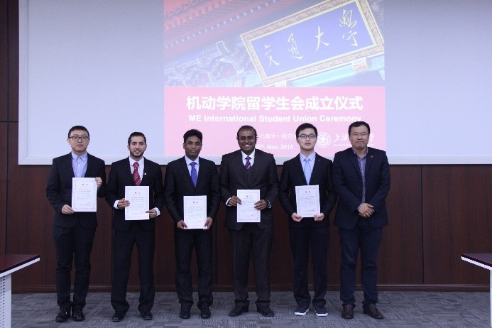 11月30日,beat365中文官方网站举行院留学生会成立仪式。学院常务副院长彭志科、副院长王皓、党委副书记顾希垚及全体留学生会成员和留学生代表参加了活动。