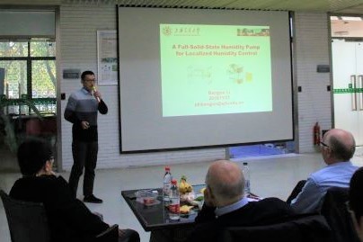 制冷所6名博士生分别做学术报告。徐圣知围绕“热驱动换热系统的热力学和(火积)分析方法”,从热力学中的熵和㶲概念出发,对热驱动换热系统进行了分析;曹毕野带来了“太阳能直驱的透过式湿泵的研究”的主题报告,从背景、设计到实验,对这一新型湿泵进行了讲解;许嘉兴就“有机金属骨架/吸湿盐实现干旱地区高效空气取水”的议题,证明了所研究的MOF材料有理想的实验表现和稳定性;华凌佶带来“基于除湿蒸发器/冷凝器的除湿热泵系统模拟与仿真”的主题报告,介绍了理想的空气侧工艺和理想干燥剂循环,提出了系统模型,并对模型进行了实验验证;李帮俊“用于局部湿度控制的全固态湿泵”的报告中,提出了一种紧凑、易于缩放的湿度泵,将无冷却装置和固体干燥剂材料相结合,实现局部湿度控制;仵斯围绕“超高热传导的复合相变材料用于高校热能收集”,提出了二维纳米材料最大导热系数增强的概念设计,并开发了一种PCM合成方法,导热系数能够提高100倍。