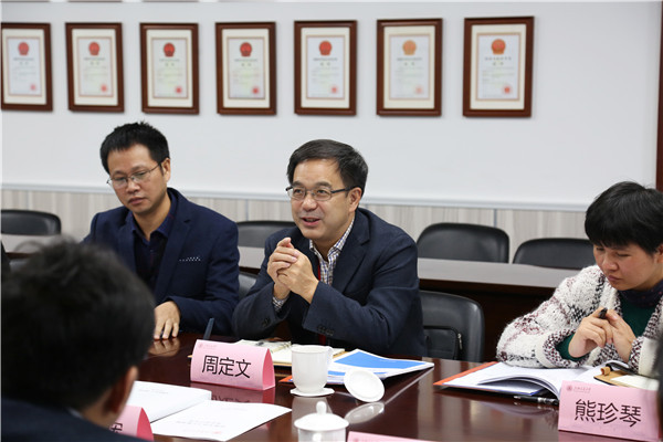 周定文就学院核专业发展状况、教学改革情况、产学合作培养模式、跨文化交流、师资队伍管理方面与学院领导、教师展开讨论。学院党委副书记顾希垚就学院学生就业引领与指导情况做简要汇报。周定文对学生专业志趣、家国情怀、价值引领等相关内容进行深入的了解,肯定了学院目前产学合作的培养模式,希望学院继续推进发展校企合作,培养出更多未来科技领域的领先人才。