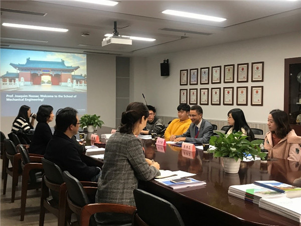 Joaquim NASSAR主要就学院本科生国际合作交流项目开展情况、本科国际化试点班培养模式、教学方法及培养成效等方面与学院师生展开座谈。Joaquim NASSAR表示学院探索出一条与国际化教学理念方式接轨的路径,营造了良好国际文化交流氛围,同时结合中国学生特点,建立了具有突出中国特色的培养体系,为培养卓越创新工科人才提供了良好的平台。