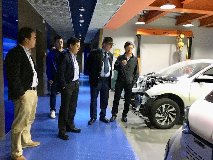 来访期间,Albers在副校长奚立峰的陪同下参观了汽车工程实验室,了解研究方向及产业化应用情况。奚校长表示,两校和两院合作悠久、关系紧密,希望今后能继续维护好合作关系,在师资交流和科研合作等方面开展更深入的合作。