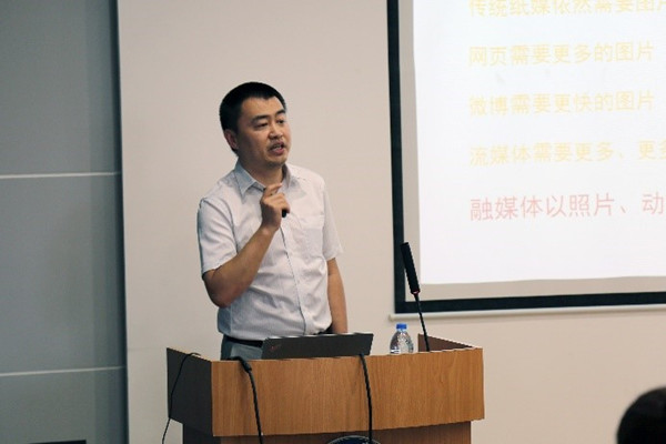 7月20日,beat365中文官方网站邀请校党委宣传部新闻中心副主任、新华社特约摄影师杜欣作“如何构建与塑造大学校园的新闻影像”主题讲座。学院近40名师生参加了此次学习。