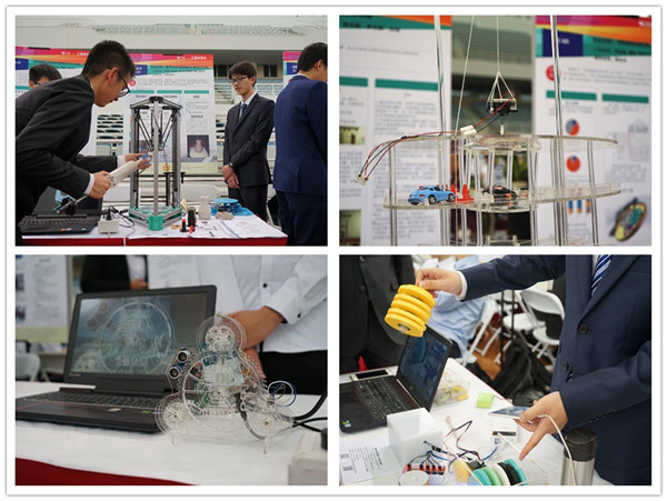 神奇的上下楼行李箱、有趣的多功能音乐盒、好玩的音乐密码锁……一个个集实用与创新、严谨与创新的设计,令在场师生大开眼界。此次展出项目主要围绕《工程学导论》、《设计与制造I》及《热力系统设计与实践》课程目标,主题源于企业热点研究问题、导师命题及学生创意发明。会场内,同学们为嘉宾详细介绍项目的创新之处、设计理念,评审们也与同学们互动交流、提出优化建议。