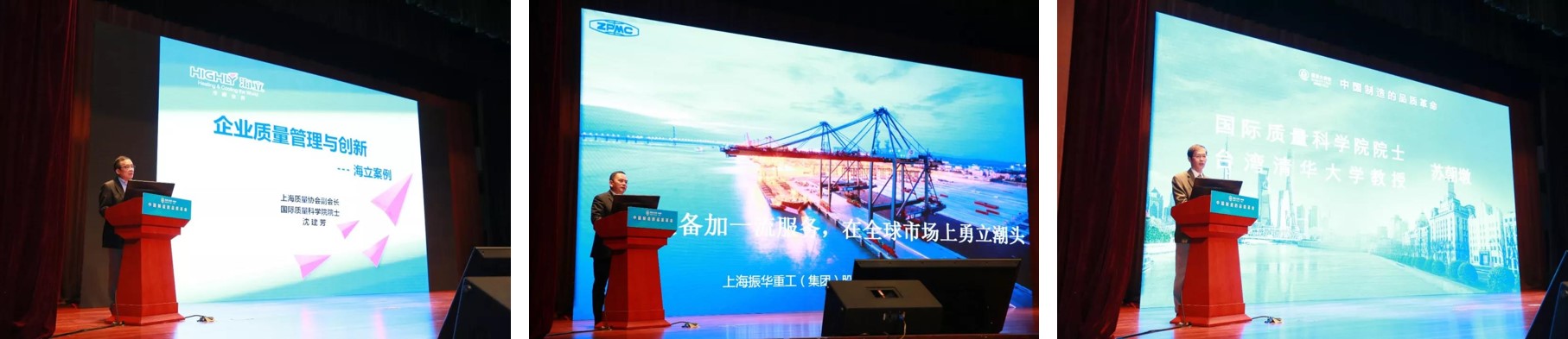 国际质科院院士、上海市质量协会副会长沈建芳,围绕《全面质量管理的创新实践》作了专题演讲,介绍了“上海制造”走向“上海质造”的过程,以及他长期担任上海海立集团董事长的质量管理与经验。上海市质量协会副会长、上海振华重工集团总裁黄庆丰以“一流装备加一流服务,全球市场勇立潮头”为题,与现场听众分享了李克强总理视察振华重工集团时所传递的精神和期望。 国际质科院院士、台湾清华大学苏朝墩教授现场听取两位主讲嘉宾的演讲后作简要发言,为“中国制造向中国创造转变”出谋划策。