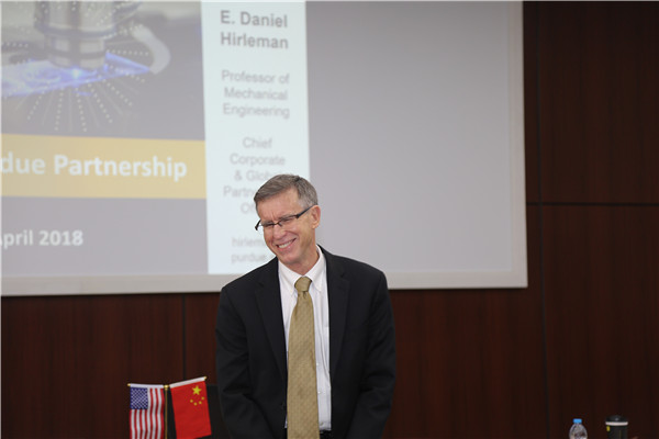 Daniel Hirleman代表普渡大学致辞,对上海交大及机械动力学院对此次纪念活动的重视表示感谢。他认为,上海交大和普渡大学在人才培养和科研等领域各有优势,十余年的合作过程中,双方探索开展了学生联合培养、科学研究等合作项目,建立起了良好的合作关系,并通过教育领域的合作增进了中美友谊。他希望未来双方合作关系进一步深化,取得更加丰硕的成果。