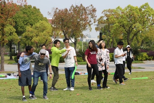 风和日丽、绿草如茵,“两人三足”的破冰游戏拉近了彼此距离。大家拿起画笔自由发挥,制作属于自己的风筝,并起了名字。随后留学生们相互配合,完成了搭骨架、捆线等准备工作。当风轻借力,一举入高空,一只只风筝乘风而起,在蓝色的幕布上划出优美轨迹。