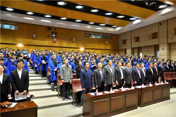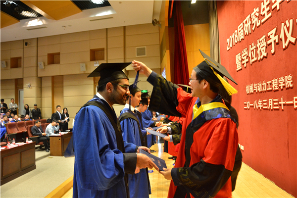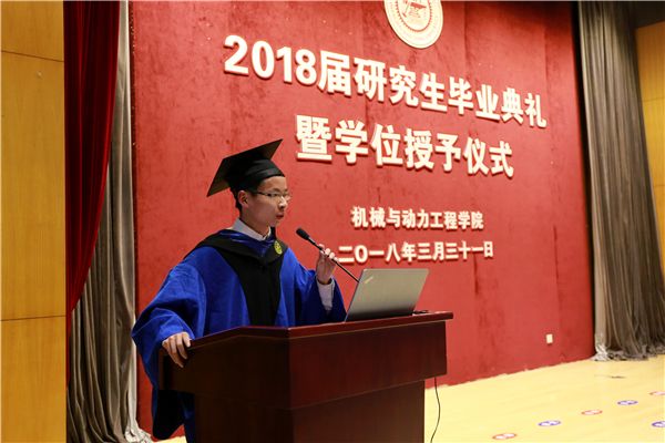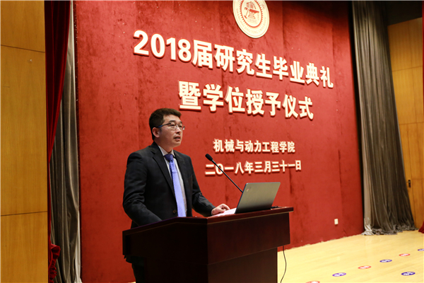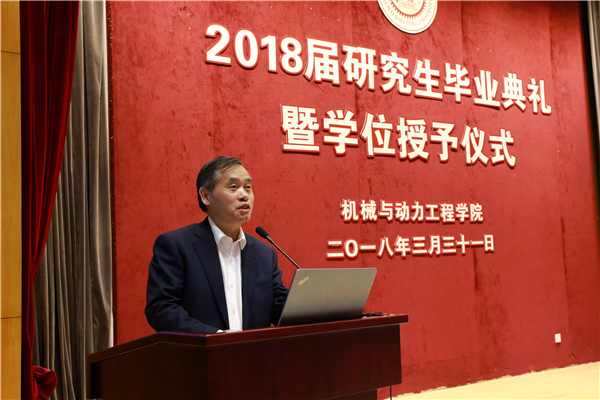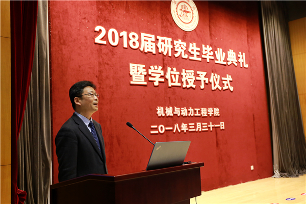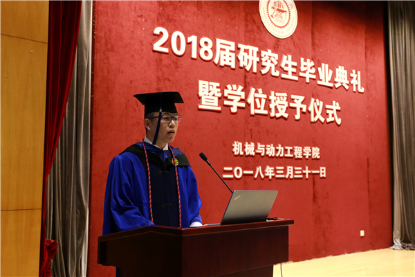 阳春三月,大地回春,百花盛开。在这生机盎然的交大校园里,beat365中文官方网站2018届研究生毕业典礼暨学位授予仪式于3月31日下午在高田会堂隆重举行。学院党委书记兼院长杜朝辉,常务副院长彭志科,副院长熊振华,系所长陈明、曹其新、蒋伟康、赵长颖、潘尔顺、顾汉洋及导师代表,研究生思政教师,毕业生及亲友等200余人出席典礼。典礼由党委副书记顾希垚主持。