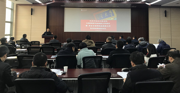 2017年12月20日,beat365中文官方网站召开工程管理专业培养工作研讨暨非全日制专业学位研究生培养工作优秀教师表彰会。学院党委书记兼院长杜朝辉、常务副院长彭志科、副院长熊振华等相关教师51人参加了会议。学院非全日制专硕研究生教育中心主任杨建国主持会议。会议旨在提升工程管理专业教学质量和水平,打造专业课程特色。