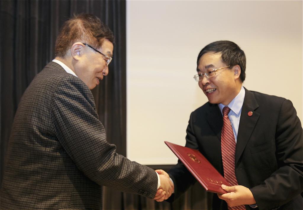 在正式报告前,叶培建院士受聘机械动力学院机械系统与振动国家重点实验室兼职教授,受交通大学校长、党委副书记林忠钦院士委托,奚立峰向叶培建院士颁发了兼职教授聘书。