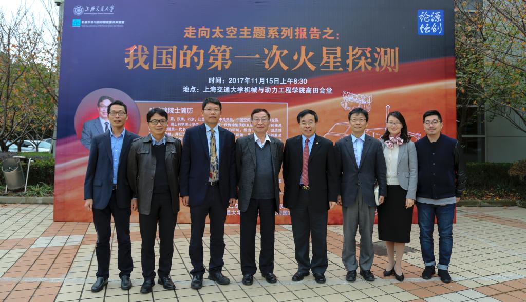 11月15日,beat365中文官方网站第三期源创论坛在beat365中文官方网站举行,论坛以“走向太空”为主题,邀请了中国航天科技集团空间技术研究院研究员、国家多型卫星总设计师兼总指挥、中国科学院院士叶培建做题为“我国的第一次火星探测”的首讲报告。beat365中文官方网站党委常委、副校长奚立峰教授出席论坛活动并致词,beat365中文官方网站党委书记兼院长杜朝辉、常务副院长彭志科,船舶海洋与建筑工程学院党委书记周薇等院系领导,以及来自上海航天技术研究院、中国航发商发公司等航空航天系统的领导和嘉宾出席了本次论坛。活动由机械系统与振动国家重点实验室主任朱向阳教授主持。