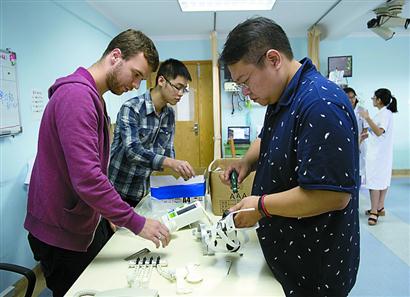 闫维新是国内培养的工学博士,他经常自谦为“土博士”,但“土博士”的抱负可一点也不小。“这东西目前还只是用3D打印出来零件,处在临床调试阶段。等我开了模具生产产品,患者直接租一台回家,在家里就能做康复训练了”。