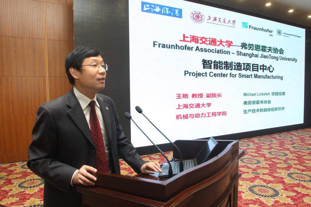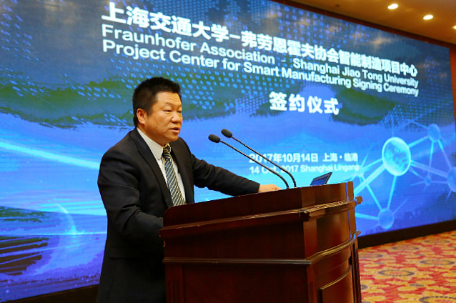 黄瓯副主任代表上海市经济与信息化委员会发言,表达了对项目中心落户临港的祝贺。他表示,上海市委、市政府高度重视发展智能制造,上海市经信委将按照“以释放带动应用,以应用带动集成,以集成带动装备”的推进思路,实施智能制造应用示范性工程,打造全国智能制造的应用高地、核心技术的策源地和系统解决方案的输出地。他认为,弗劳恩霍夫协会与上海交大的强强联合,将有利于上海整合全球优势资源,加快智能制造关键技术的研发和成果的转移孵化,将有力地支撑临港智能制造中心建设,助力上海市建设具有全球影响力的科技创新中心。
