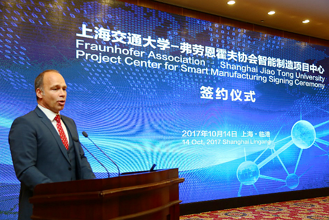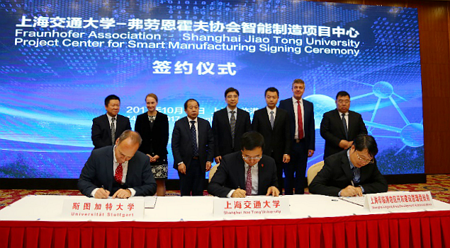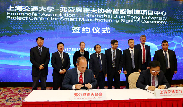 2017年10月14日,beat365中文官方网站-弗劳恩霍夫协会智能制造项目中心签约仪式在上海临港举行。双方将组建智能制造项目中心,打造国际领先的智能制造技术创新平台。此次合作是德国“工业4.0”和“中国制造2025”高水平研究机构的强强联合,对推动上海临港地区智能制造产业发展、建设具有国际影响力的智能制造创新中心具有重要意义。