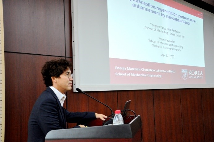 韩国高丽大学Yong Tae Kang教授应邀作了学术报告,介绍了纳米吸收剂、纳米流体捕集二氧化碳等方面的研究。Yong Tae Kang主要从事热能系统、吸收式热泵、热交换器设计、制冷系统、纳米流体和纳米吸收剂捕集二氧化碳方面的研究。他在1994年获得The Ohio State University(OSU)机械工程博士学位,并继续从事博士后研究,2000年进入Kyung Hee University 任教,并于2014年进入Korea University任教授。