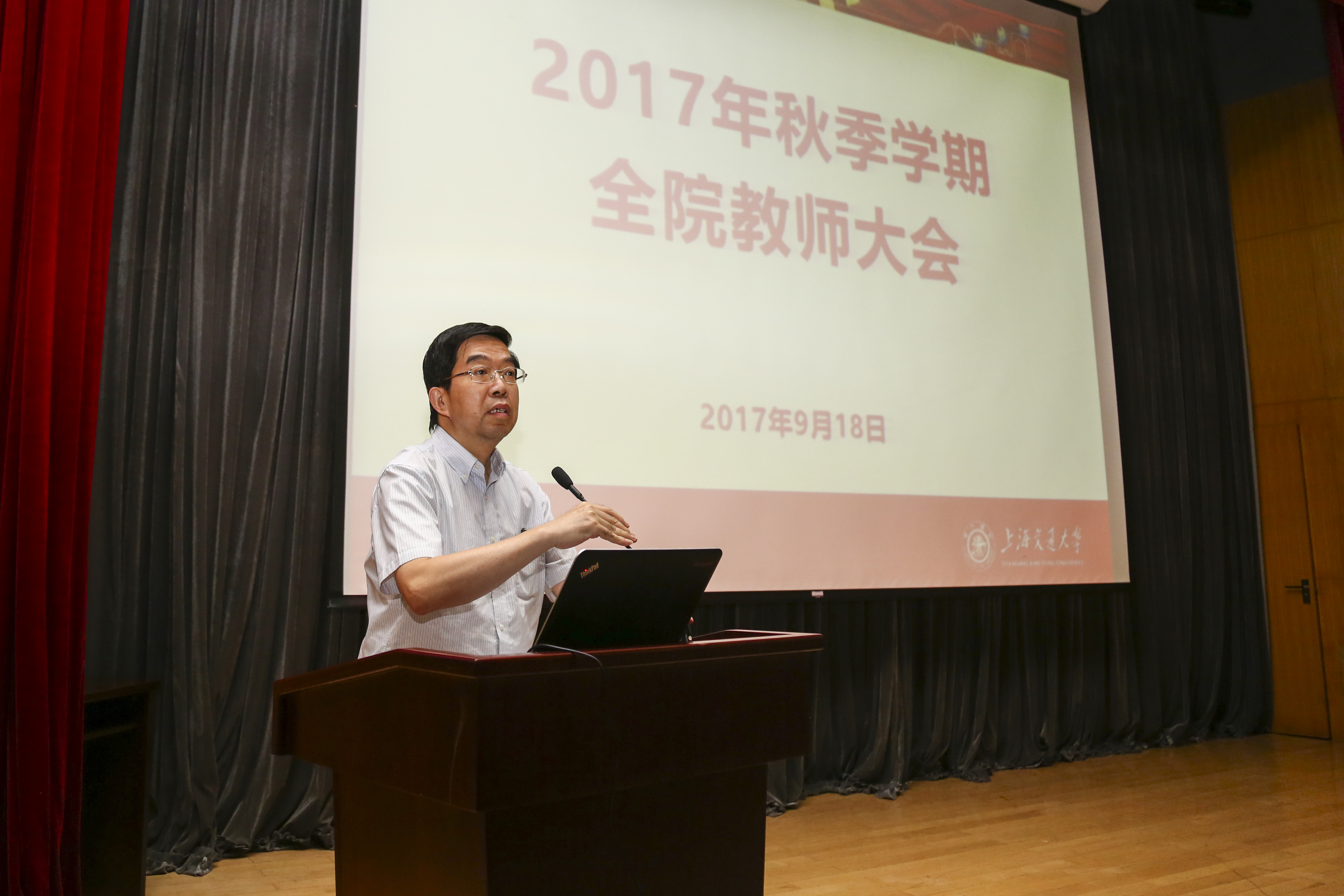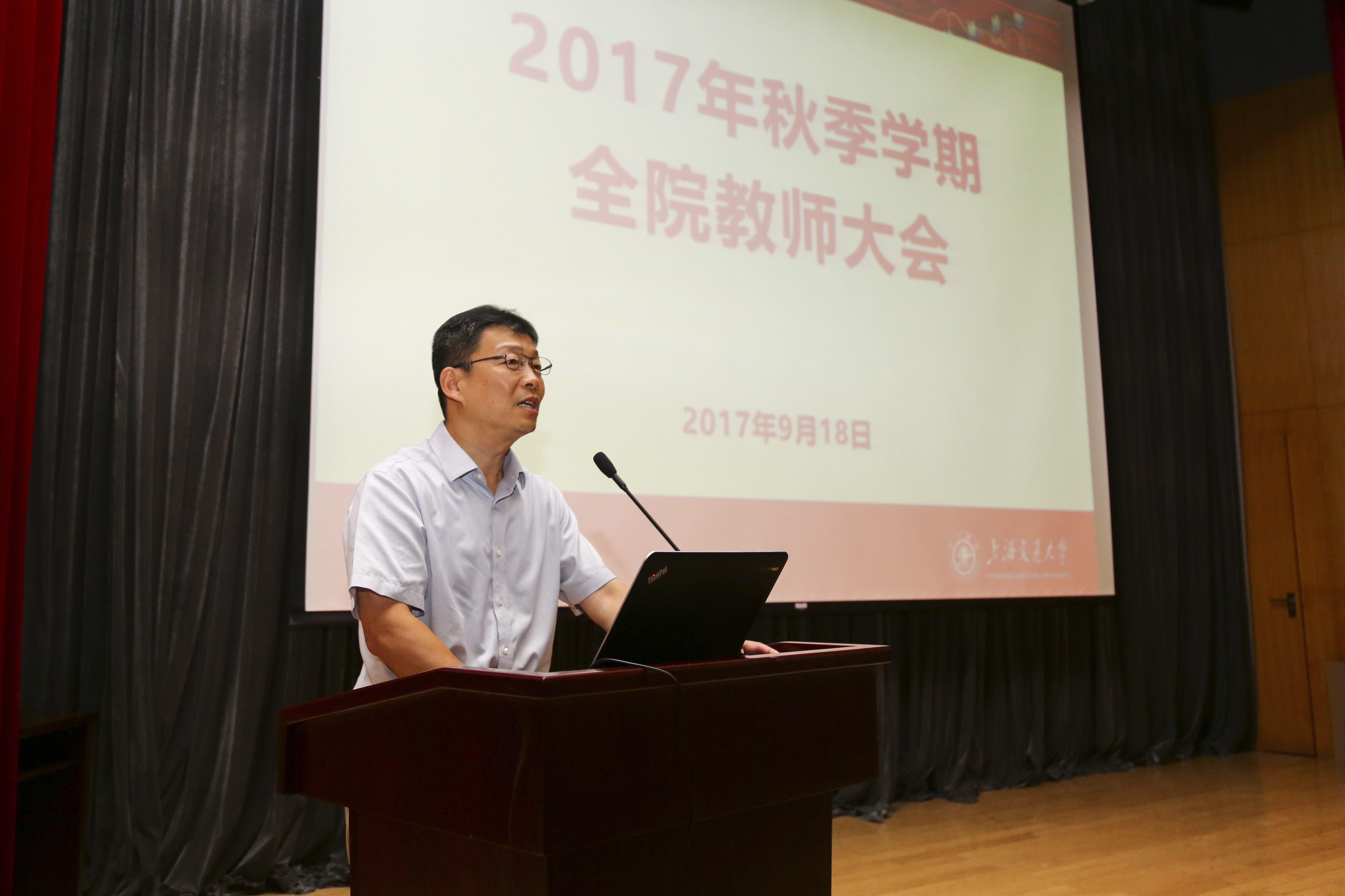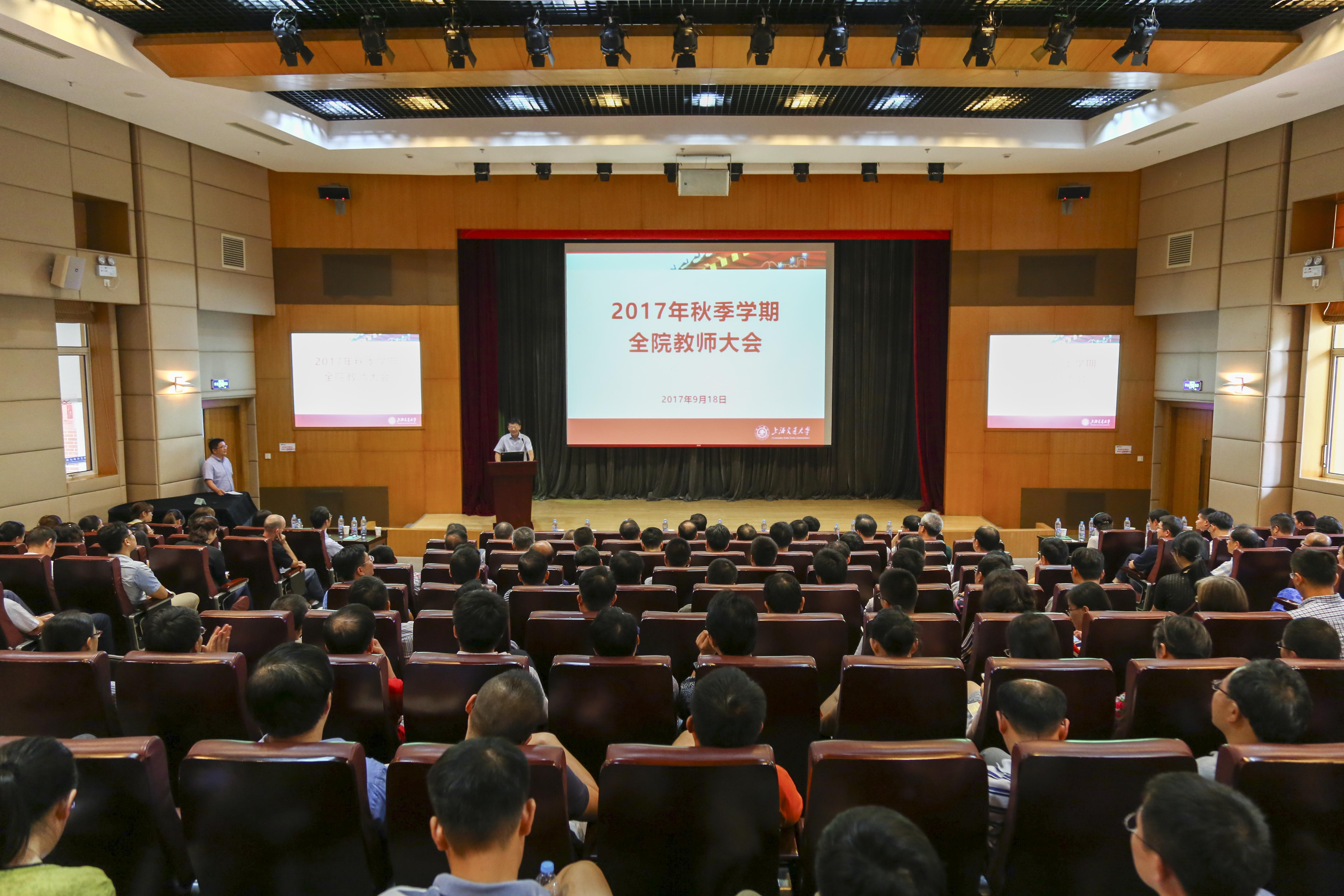 2017年9月18日,beat365中文官方网站召开全院教师大会。上海交大副校长黄震、组织部副部长吴映强及学院党政领导班子成员、全体教师200余人参加了大会。