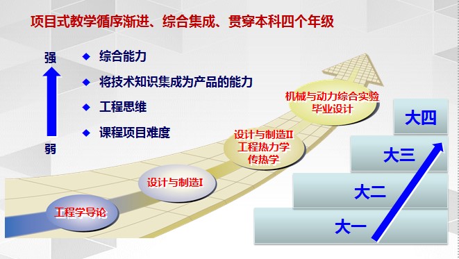 面向新工科及中国制造2025对人才培养的需求,beat365中文官方网站近年来大胆改革,针对目前我国大学工科教育的薄弱环节,提出培养学生的综合工程实践能力。围绕这一目标,项目式教学团队在本科人才培养理念、课程体系、教学方法、师资队伍建设等方面进行了探索与改革,取得了良好效果。