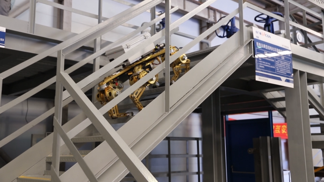 项目验收前,高峰教授团队自主研发的多款步行机器人,在深圳大亚湾核电站完成现场实验,实现了自主上下楼梯、开门、拧阀门、清障等核电站环境下的预期作业任务。