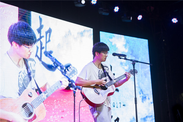 莫凡同学担任主唱的默马乐队自弹自唱,一首《梦醒乌托邦》让人回忆起三年前一群人在菁菁堂看球赛,结束后迎着朝阳向前的日子,如今也像梦一场。莫凡还特地给室友送去一首《嘿,姑娘》,四年的同窗情、室友谊尽在歌声中。