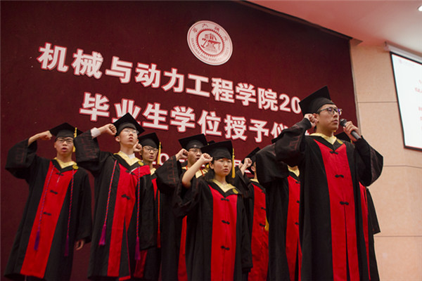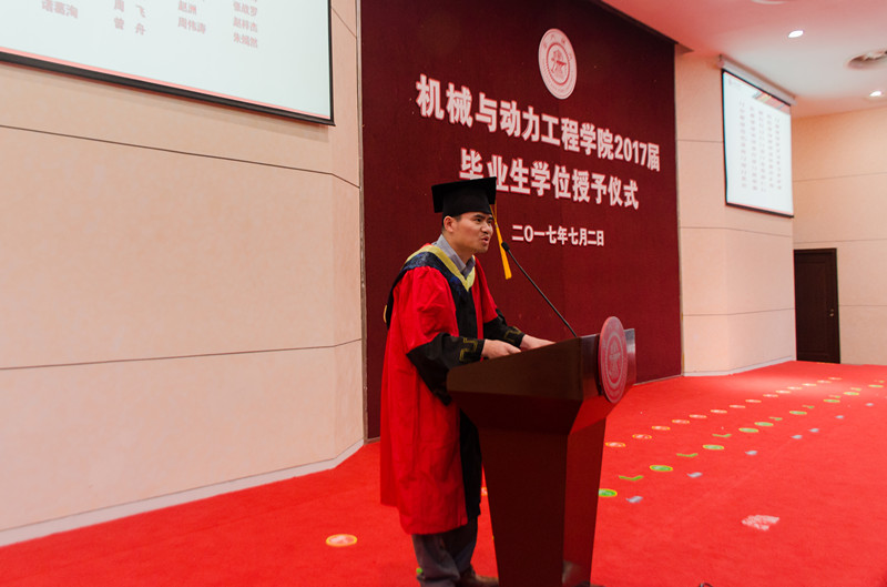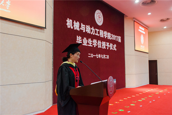 校优异学士论文获评者、核工程与核技术专业的张婷婷代表全体毕业生发言,大一结束由医学院转入机械动力学院的她,四年来对待课程和科研从来没有丝毫的懈怠。专业第一、两次国奖,回忆起当初奋斗的点滴,回忆起略显迷茫的曾经,是那份态度和执着的精神激励着她不断前行。她说,“无论毕业之后的选择是什么,未来的每一天都将记得四年岁月里赋予我们的希望与情怀,让自己无愧于交大机动人这一称号”。