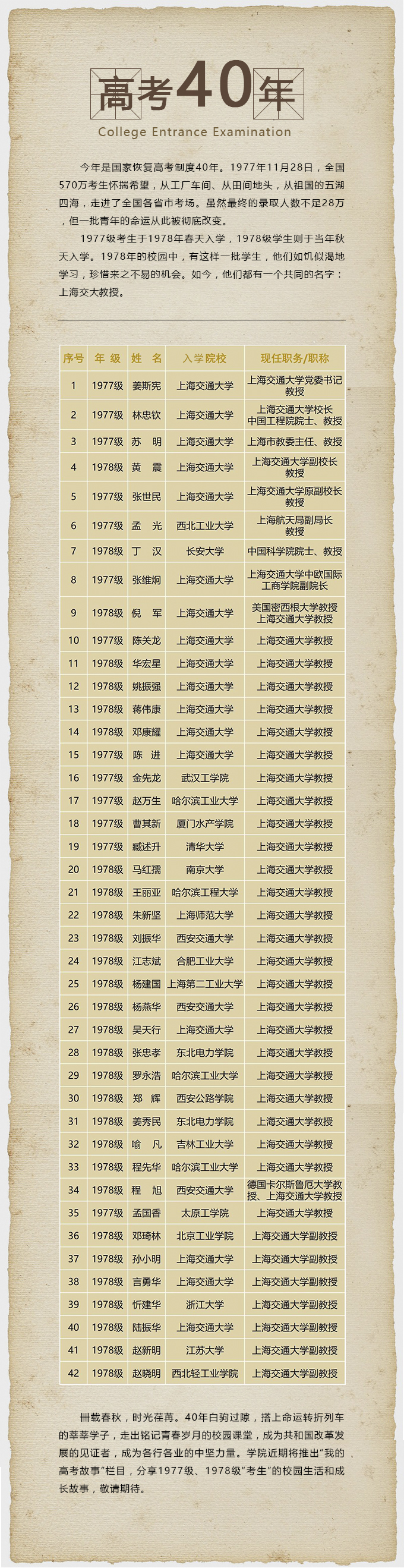 【专栏】我们共同的名字是上海交大教授,我们的人生因高考而改变