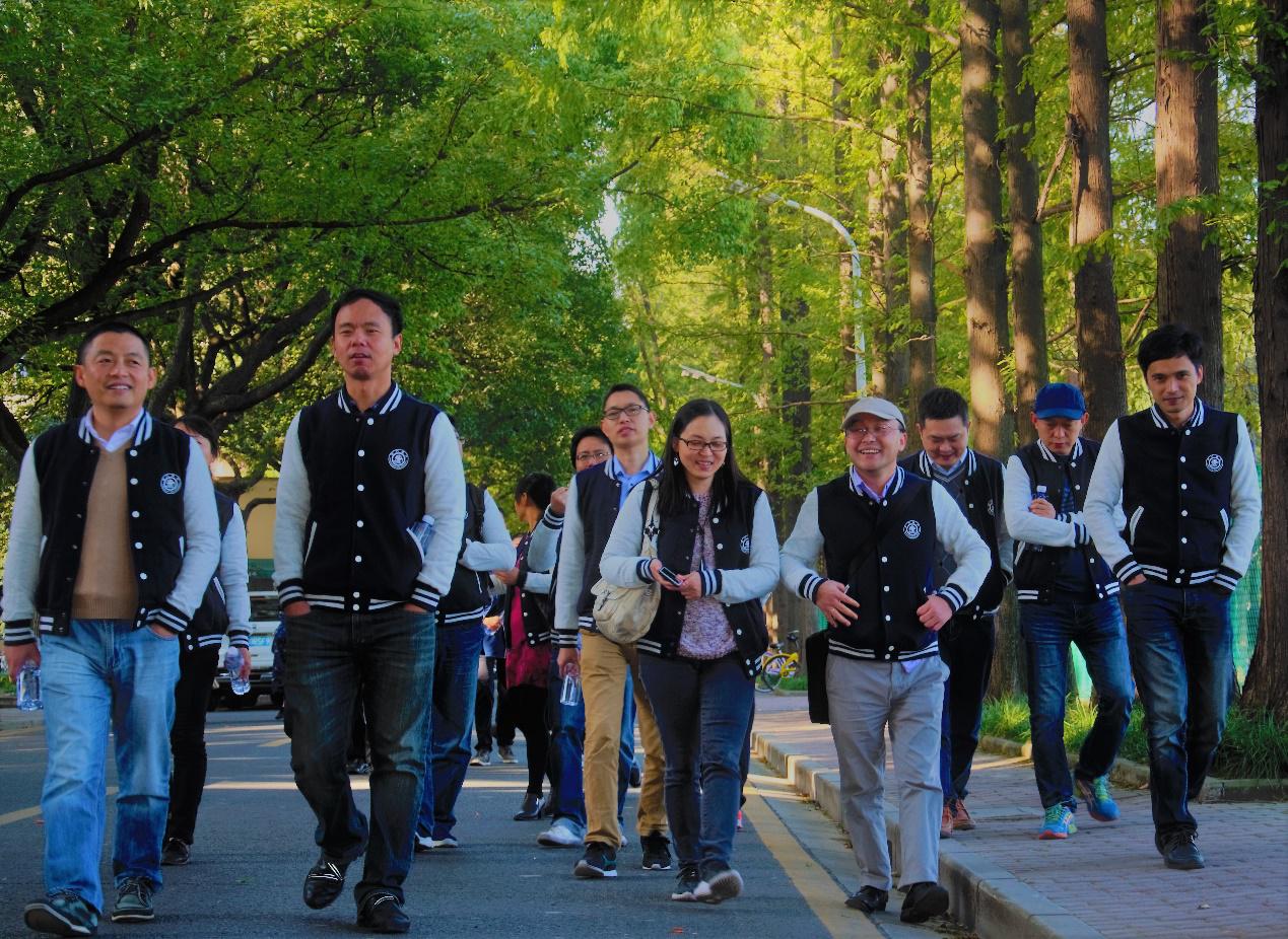 下午3点,游览完当年校区之后,校友们开始了对本部扩建部分的了解。当初的学子如今依然骑着单车驰骋校园,从凯旋门到庙门,从庙门到机动大草坪,本部的全新面貌给了所有校友相同的最大感受——大,真的很交大。以至于校友们在合影时喊得不是“茄子”或者“班长胖不胖”,而是“交大大不大”。