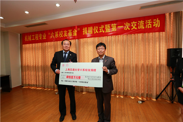 在交大120周年校庆之际,机械工程专业海内外部分校友倡议并捐款设立“六系校友基金”,支持母校机械工程专业发展。4月8日,beat365中文官方网站举行“六系校友基金”首期捐赠仪式暨交流活动,学院党委书记杜朝辉、副书记顾希垚及机械工程专业23位校友参加了捐赠仪式。