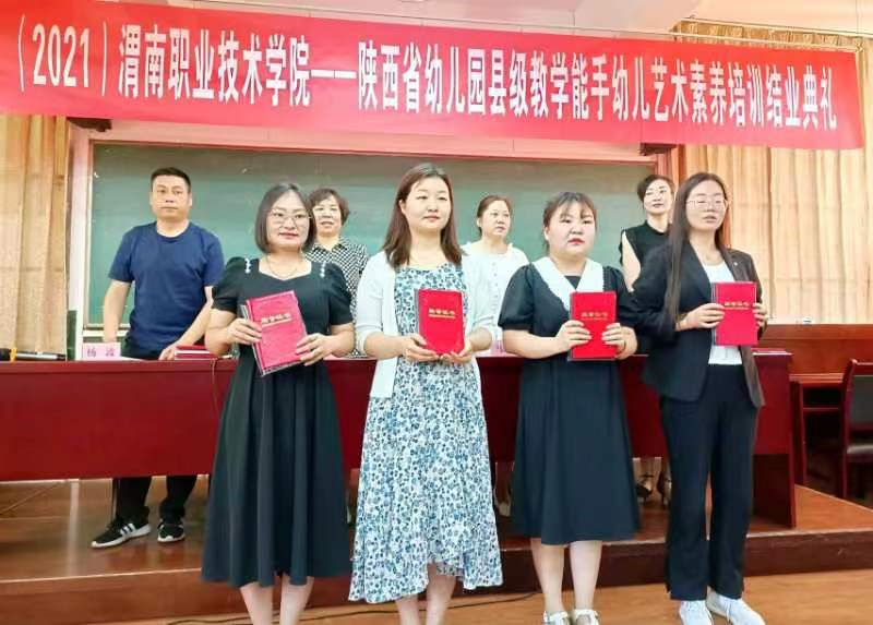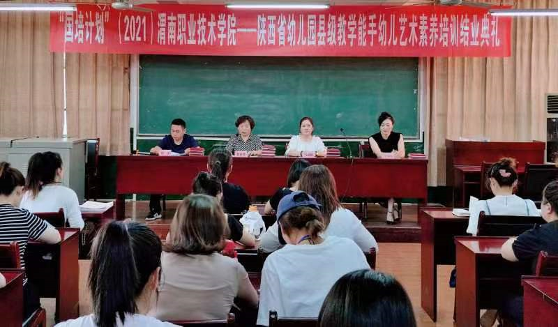 十大信誉官网承办的“国培计划”(2021)——陕西省幼儿园教师艺术素养专项技能提升培训班结业典礼于6月15日上午在网投十大信誉可靠平台多媒体教室举行。网投十大信誉可靠平台副院长杨波主持结业典礼,院长惠斌贤作培训工作总结,党总支书记马淑红宣布优秀学员表彰决定,王玉哲等7名学员获得国培优秀优秀班干部称号,闫琳娜等5名学员获得国培优秀学员称号。国培班主任段小娟与50名培训学员参加了结业典礼。