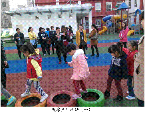 今天下午我们参观的渭南示范幼儿园,它们户外的环境创设均围绕着快乐体育创设。丰富多彩的户外活动,让我有种回到童年的感觉,而这些民间体育游戏成了孩子们的最爱。渭南示范幼儿园,将美术特色融入幼儿园的角角落落,幼儿园环境装饰中的色彩特点,给了幼儿以美的视觉享受。图画色泽单纯,接近自然,这样的色彩令纯洁的孩子们产生丰富的想象。幼儿园环境中的绘画造型应有其自身的特点,即符合幼儿的审美特点,又感染了幼儿。每一个角落都看出了教师的独具匠心,根据幼儿的年龄特点细心周到的布置每一个墙面、每一个区域、每一个活动,各具特色。