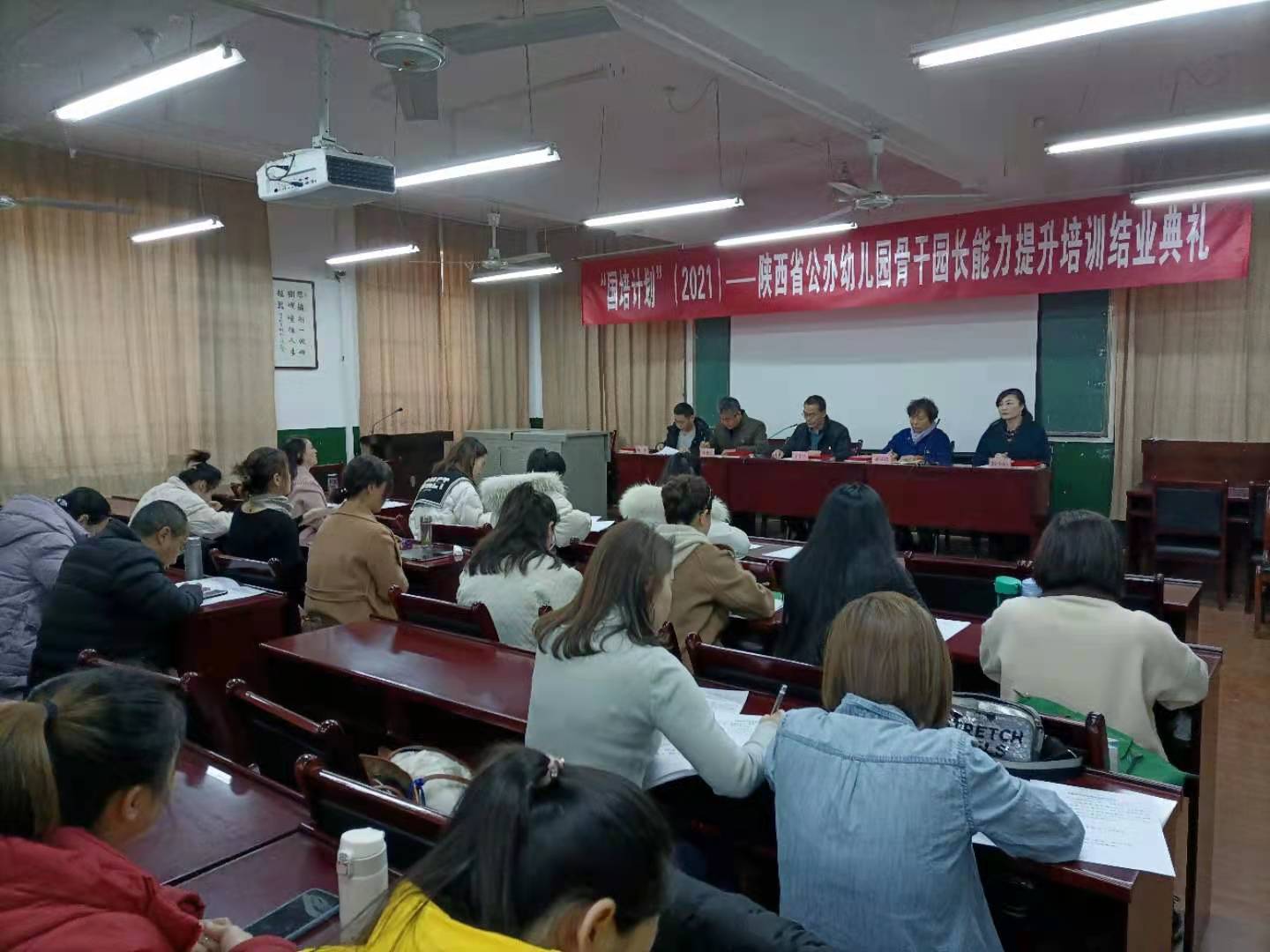 国培计划”(2021)——陕西省公办幼儿园骨干园长能力提升培训项目结业典礼于12月16日上午在网投十大信誉可靠平台多媒体教室隆重举行。网投十大信誉可靠平台副院长王韦华、党政办公室主任雷建文、网投十大信誉可靠平台党总支书记惠斌贤、网投十大信誉可靠平台副院长杨波、国培班主任段小娟及来自全省各地市的50名参训学员出席了参加了结业典礼。