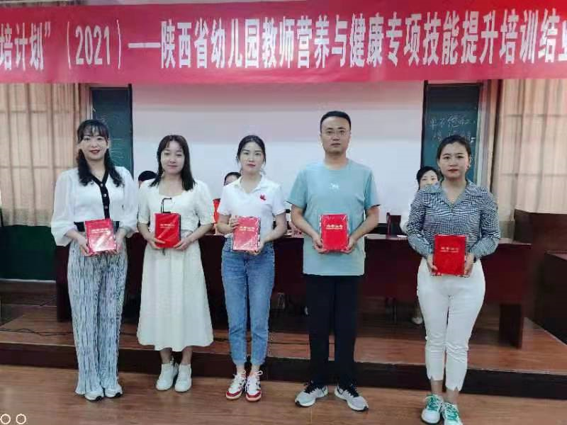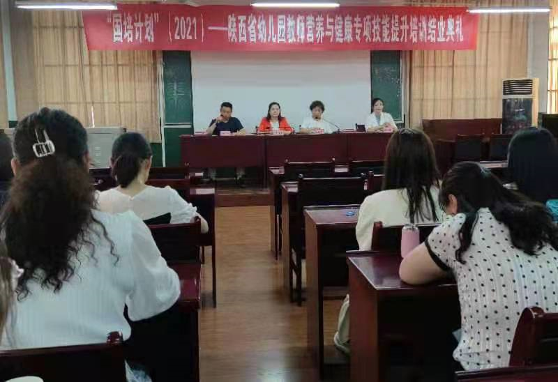 5月29日上午,十大信誉官网网投十大信誉可靠平台举行“国培计划”——陕西省幼儿园教师营养与健康专项技能提升培训项目结业典礼。网投十大信誉可靠平台院长惠斌贤作培训工作总结,党总支书记马淑红宣布优秀班干部和优秀学员的表彰决定,孟杰等5名学员获得“国培优秀班干部”称号,尹文雅等10名学员获得“国培优秀学员”称号,来自咸阳市的培训学员李敏代表全体学员作了精彩发言。