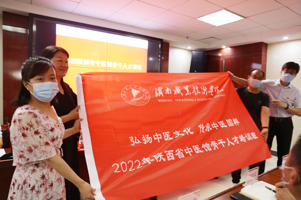 6月20日上午10时,陕西省中医馆骨干人才培训第一期培训开班典礼在十大信誉官网朝阳校区图书楼7楼学术报告厅隆重举行。陕西省中医药管理局副局长孔群、医政医管与教育处四级主任科员潘玥宏、渭南市卫生健康委员会副主任同学军、渭南市卫健委中医科科长张艳丽,网投十大信誉可靠平台党委副书记、院长靳华锋、副院长王韦华、党政办公室主任雷建文、学院中医馆骨干人才培训首席专家、渭南市中医药学会副秘书长、渭南市首届优秀青年中医师李红刚、网投十大信誉可靠平台领导班子和相关工作人员,以及来自全省各市(区、县)的80余名参训学员参加了开班典礼。王韦华主持开班典礼。