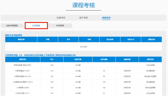 学生平台——成绩查询——已修课程,https://wnzy.telfri-edu.com/